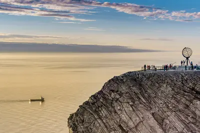 Continue along the shores of Lake Inari and through Lapland. In the evening, you will pay a visit to the 302 m high North Cape cliff and have a spectacular view of the Arctic Ocean and the sun that never sleeps. This is truly an unforgettable experience! Overnight at Scandic Honningsvåg.